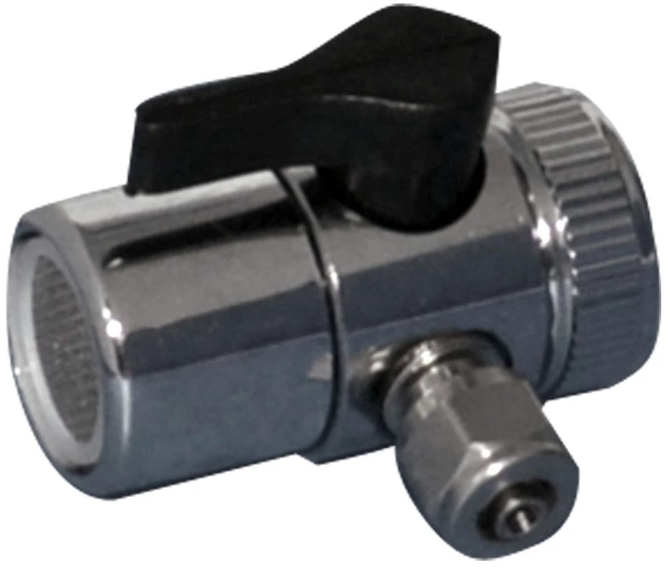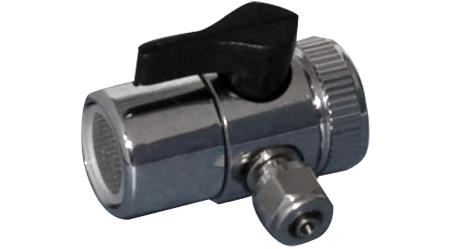 Fém átváltó csap az FHCTF asztali víztisztítóhoz 1/4″ csatlakozással. Közcsavar közbeiktatásával külső és belső menetes kifolyó csőre is szerelhető.