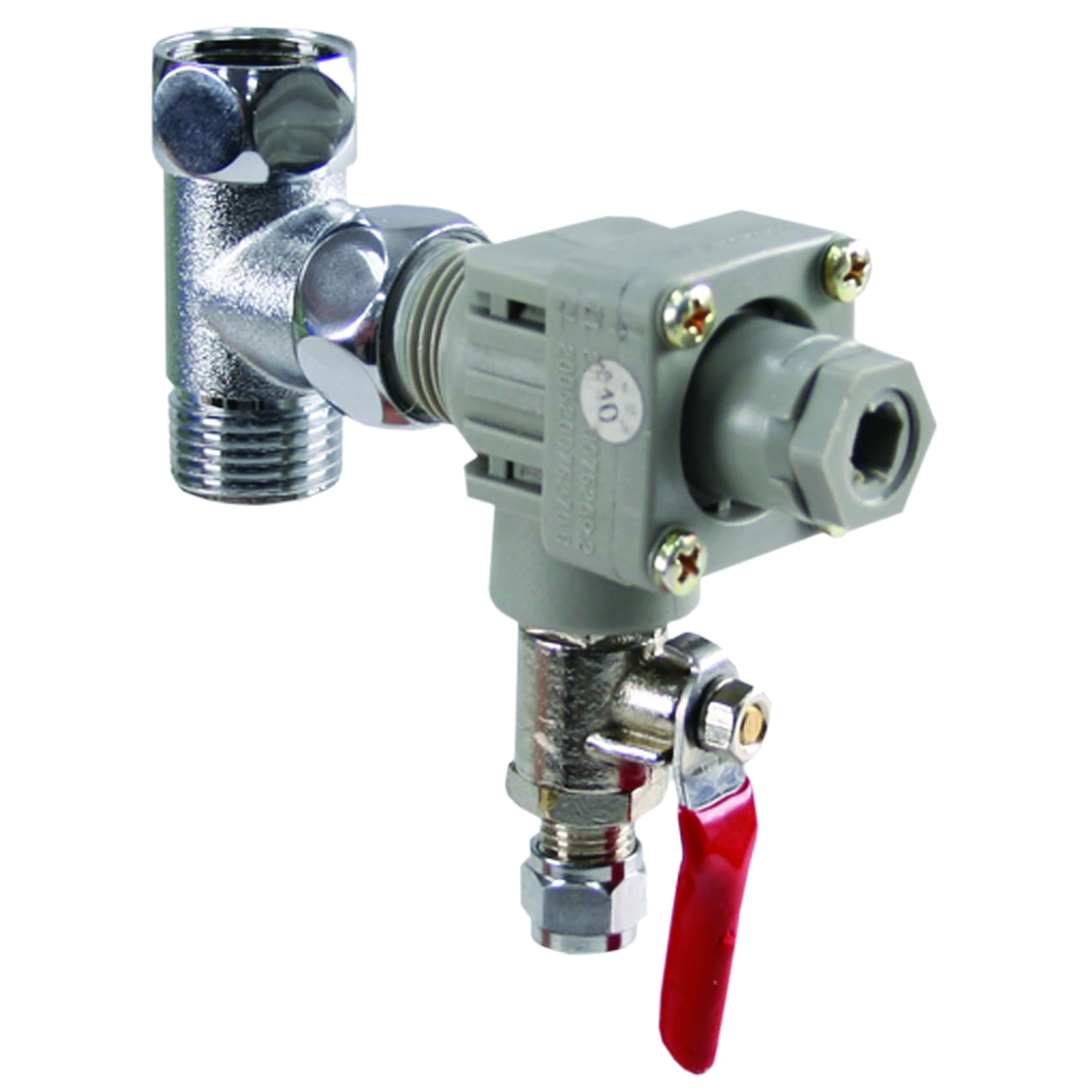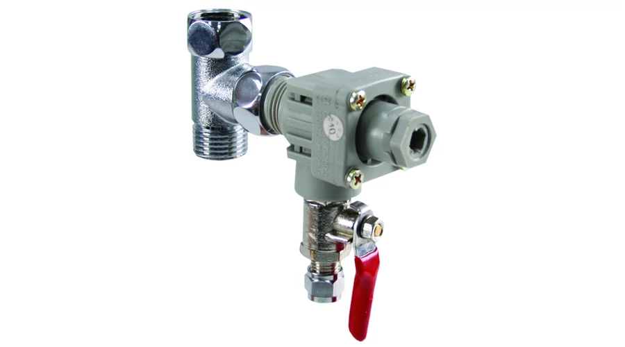 ADV-REG-CR-K nyomáscsökkentő sárgaréz golyóscsappal, csatlakozó adapterrel. A nyomáscsökkentő védi az üreges szálas ultraszűrő membránokat a hirtelen víznyomás változástól. A nyomásszabályozó szelep tartozéka a golyóscsap és a csatlakozó adapter.