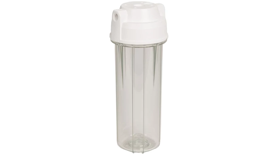 Az EG14CWAQ-4 átlátszó szűrőház egy fejből és egy pohárból áll. A fejben 1/4″ műanyag menetes bemenet- kimenet található és 2 db “O” gyűrűvel szerelt.