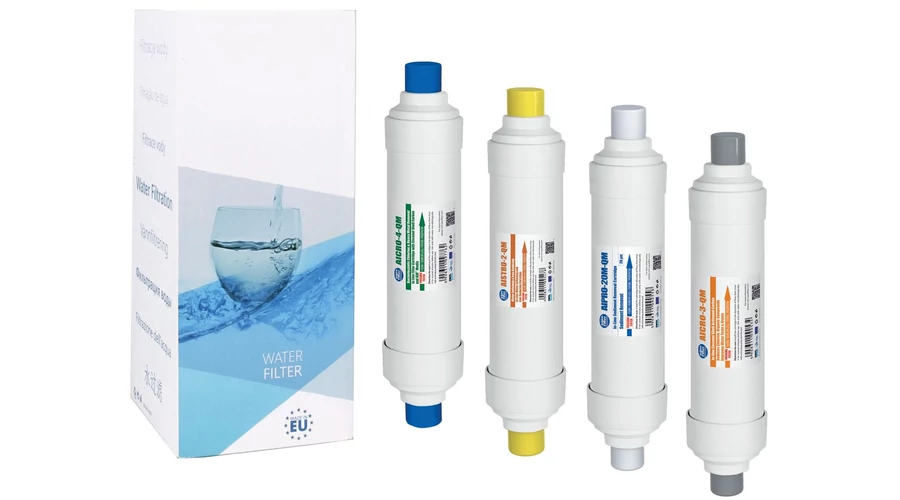 AICRO-4-QM – 2 szűrési fokozat, aktív szén és KDF média a nehézfémeket, egyes vírusokat, baktériumoka szűri ki a vízből. Csereperiódus: 3 -6 hónap