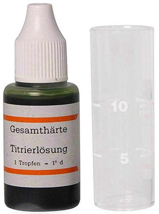 A szett tartalma: 1 flakon titráló folyadék és 1 db kémcső (mérőedény).